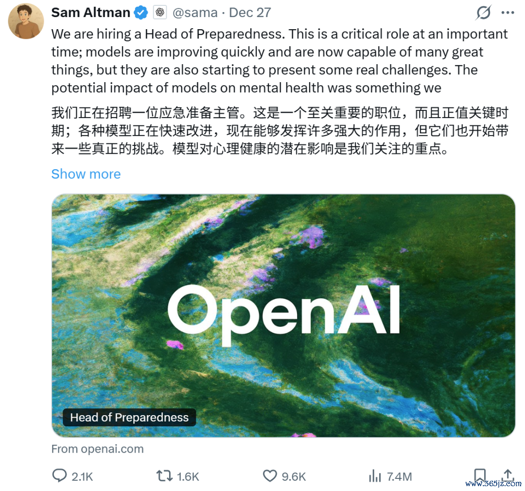 但 Sam Altman 在发布这则招聘启事时,却没有一丝“高薪岗位”的轻松感,反而直言:“这将是一份极其有压力的工作,你几乎一上来就要跳进深水区。”